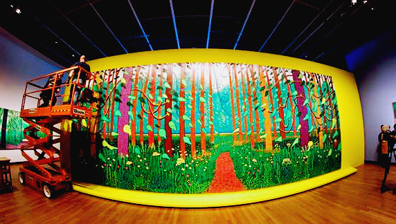 데이비드 호크니 작품 중 자주 들어나는 가장 상징적 인 이미지 중 하나는 수영장 입니다. 호크니는 한때 로스앤젤레스로 여행을 간적이 있었습니다. 영국에서는 집에 수영장은 고급스러운 시설물이었는데, 로스앤젤레스의 수영장은 대중화 되어 있는 것에 충격을 받았다고 합니다. 로스앤젤레스에는 집집마다 수영장이 설치되어 있었고, 강렬한 햇빛에 빛을 반사하고 있었습니다. 그 이후 1960년에서 1970년 사이 그의 대다수 작품의 주요 배경은 수영장이 되었습니다.